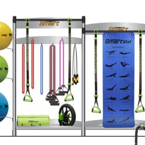 - Smart Self-Guided Systems – Includes med balls, resistance bands, stability balls, and mats, each printed with visuals showing proper form, reps, and targeted muscles