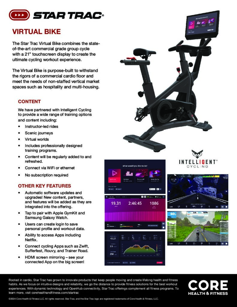 Benefit Description – The Star Trac Virtual Bike ensures years of dependable performance, making it a worthwhile investment for your fitness facility or home gym. Built with an aluminum, powder-coated frame.